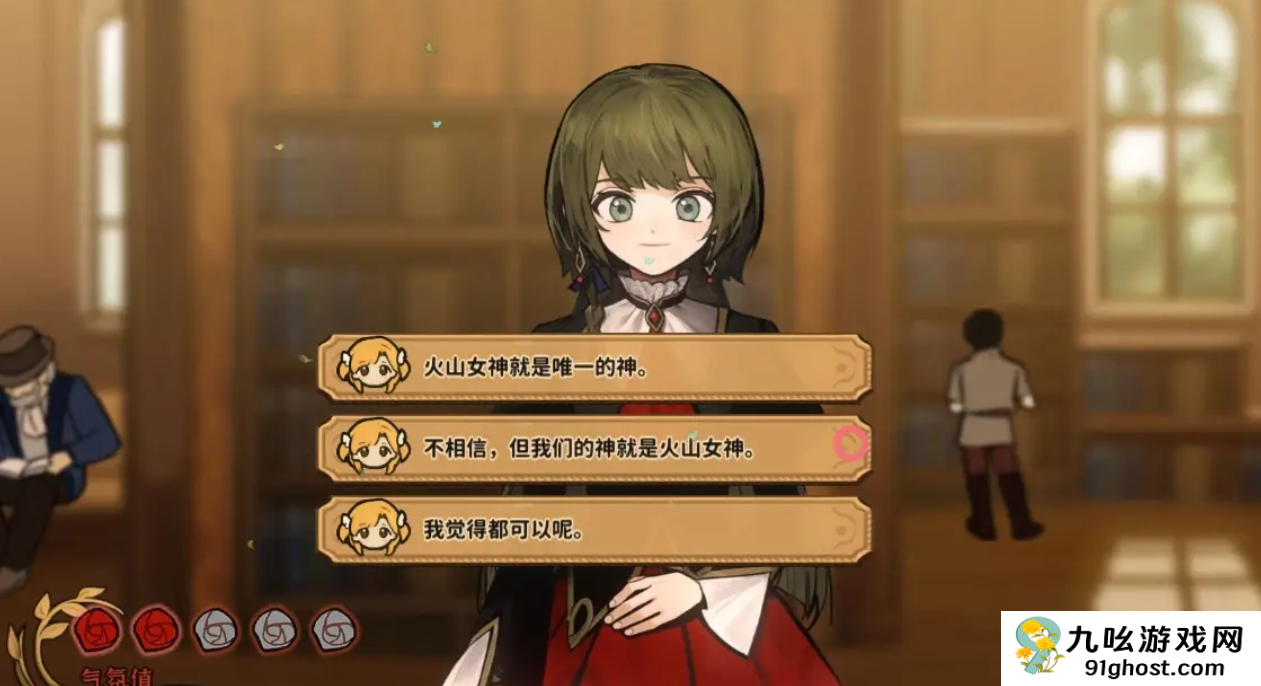 在谈及信仰话题时,玩家则需要回复“不相信神,但我们的神就是火山女神”。