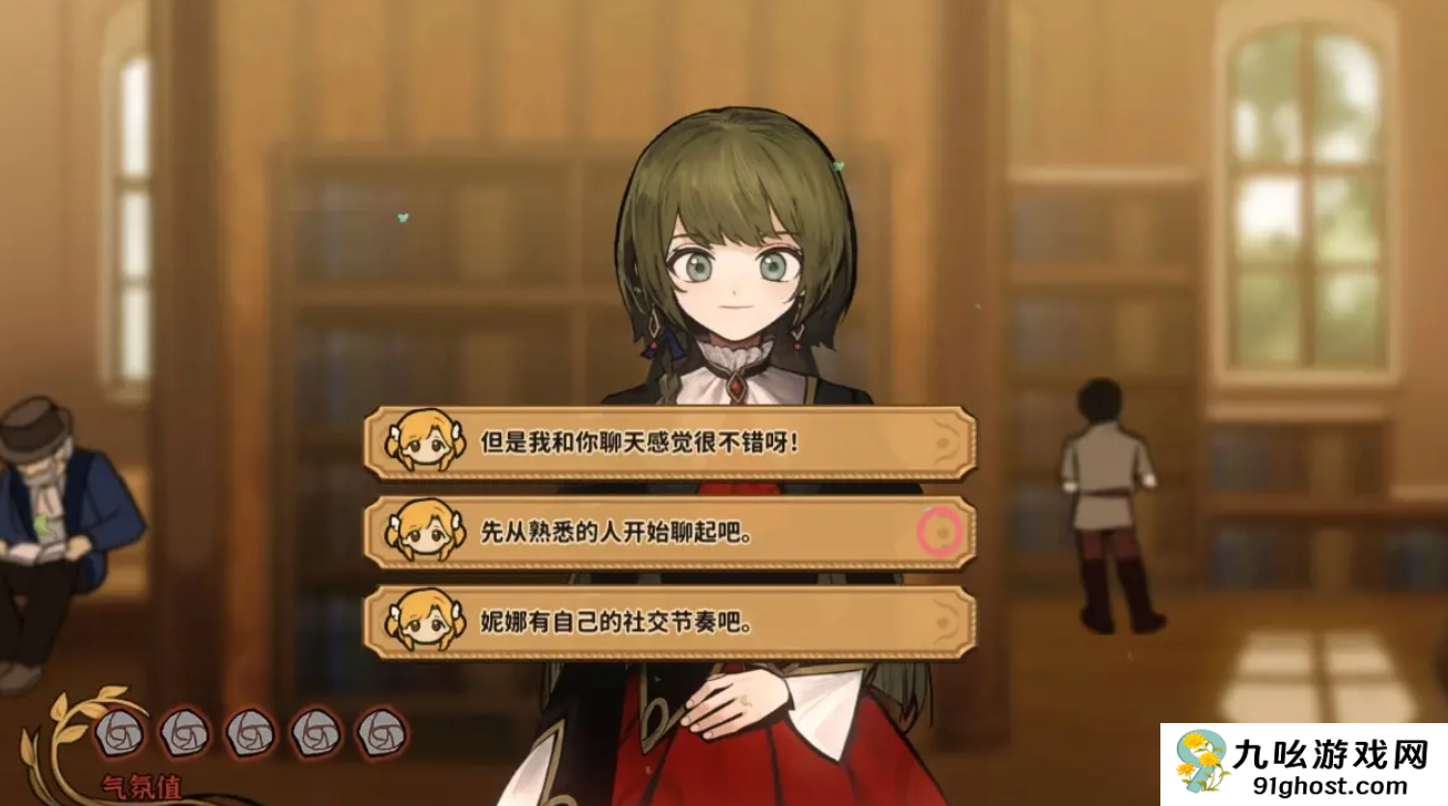 第二个方案是玩家通过活动选项,来取得尼娜的好感度,场景内的好感度可以直接选择,剧院流浪狗、挚友一生、浪漫的爱情,随后,玩家也可以在图书馆内,和尼娜攀谈未来的计划,同时聊聊儿时回忆,即可获取大量好感度加成。