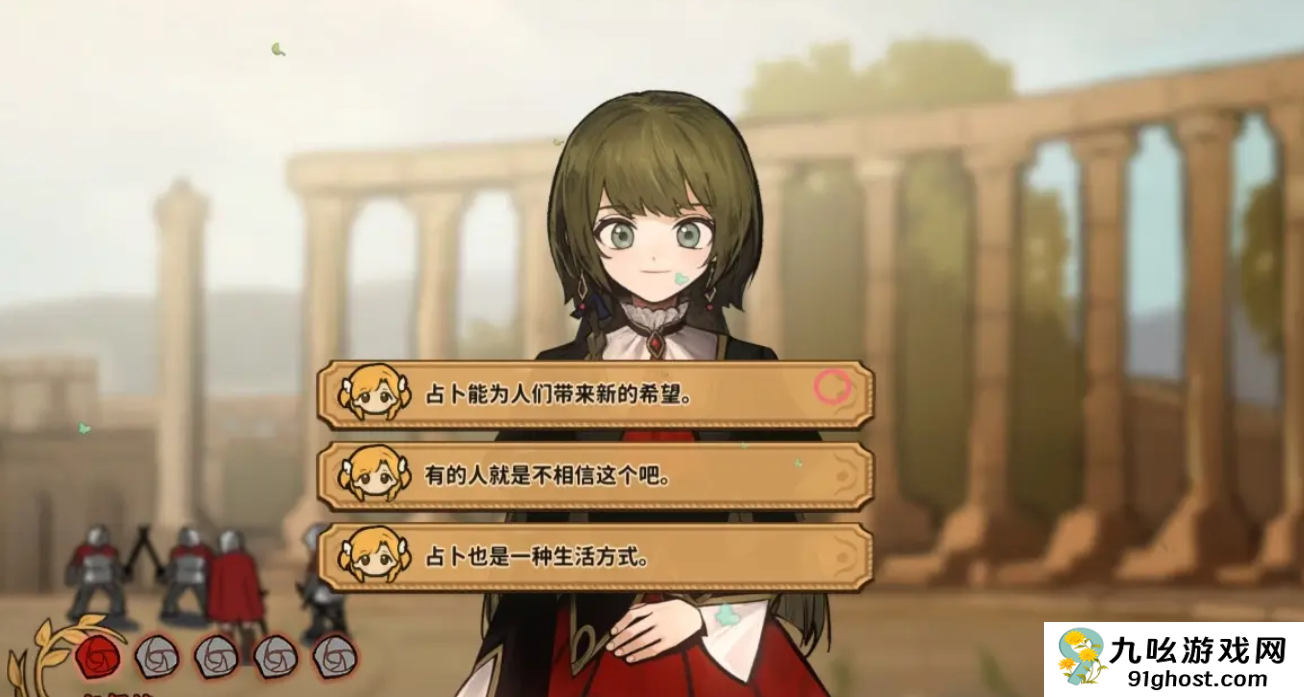 第三个途径是玩家在关键的主线对话内,选择偏向米娜的回复,例如在谈论到占卜话题时,玩家需要选择“占卜能为人们带来希望”。