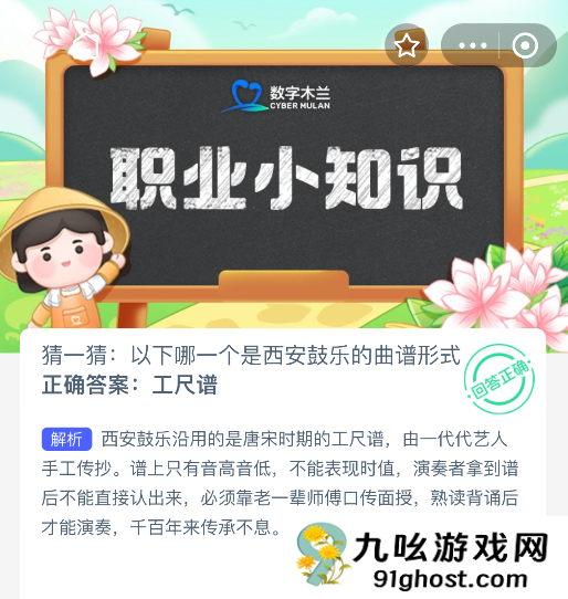 猜一猜:以下哪一个是西安鼓乐的曲谱形式?【蚂蚁新村每日一题】2025年10月22日题目已发布!坚持答题,积累木兰币,即可加速小镇建设。答对本题,立即可享“产速+3/时”的加速奖励!今天正确答案是【工尺谱】。西安鼓乐沿用的是唐宋时期的工尺谱,由一代代艺人手工传抄。