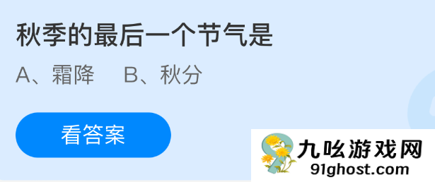 以上就是秋季的最后一个节气是,支付宝蚂蚁庄园2025年10月23答案最新,更多精彩内容,请点击关注本站手游网更新!