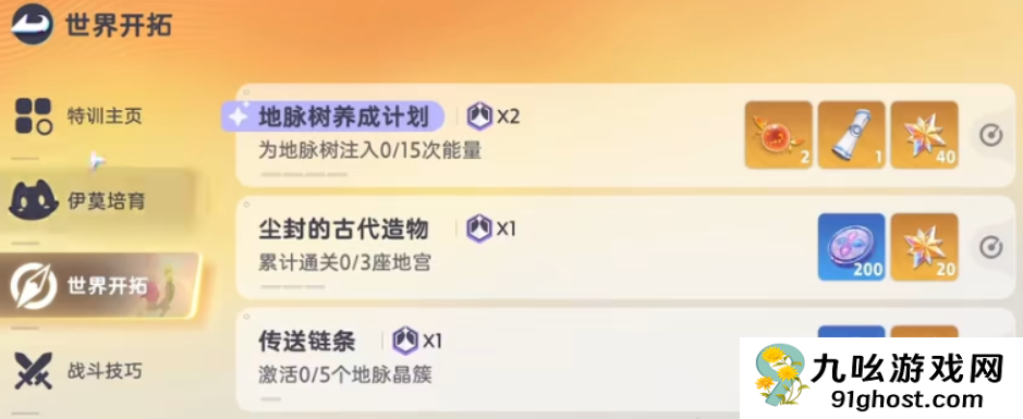 第三个方式就是参与世界探索的任务,这里在世界地图当中探索的时候,所有的任务当中基本都有辉石的赠送,但是奖励的数量不太一样,一般来说完成难度比较高的任务,给的是40个辉石奖励,如果是简单的任务,给的基本都是20个辉石。这里的玩法其实就相当于游戏当中的任务成就玩法,所以参与这个板块里面,根据目前任务的要求来完成,就可以获取相应数量的辉石,难度自然是不高的。