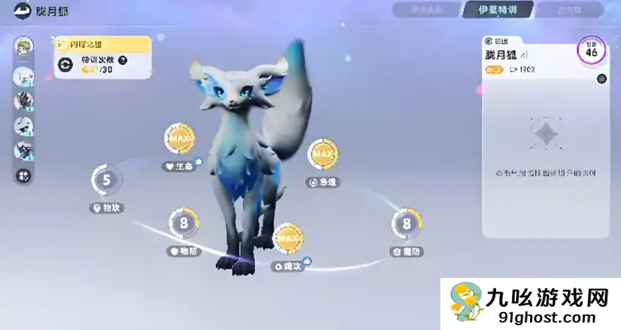 在这个阵容搭配之后,就非常适合前期大家进行开荒的战斗了,那么这个战斗其实后期属性面板大家也可以关注一下,因为这里的月光狐,其实在属性面板上也是属于平民阶段比较顶尖的一个水准,前期如果大家想拥有性价比比较高的神宠,它绝对是其中的一个,而且相对于其他的宠物来说,它的进化速度会更快一些,只要将它培养到18级,再完成朝村花的相关任务,这个宠物就可以开始进行进化了,所以相对于其他角色22级可以进化的阶段来说,它进入进化阶段会更快一些,进化之后,它在外观上面也会有一定的变化,而且还可以做一些特殊的强化技能,在实战能力上面它绝对是非常强的,后期如果大家想要用到他的光系角色克制优势,比如遇到了一些暗系boss的话,基本都可以用它来上场。