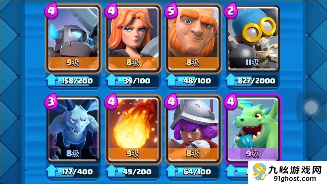 卡组不需要带太多的空牌,太多的空牌会削弱我们的防守。一般来说,我们需要用地面来抵抗对面进攻的伤害,而对面进攻的伤害往往是非常痛苦的。卡组有一两张空牌就够了,对面一般不会携带太多的空中单位。进入7000杯到9000杯的部分,当我们有足够的资源专注于维护一套正常的卡组,不要认为这个赛季的牌很强,先提高水平,水平抑制在游戏中仍然有很大的优势。