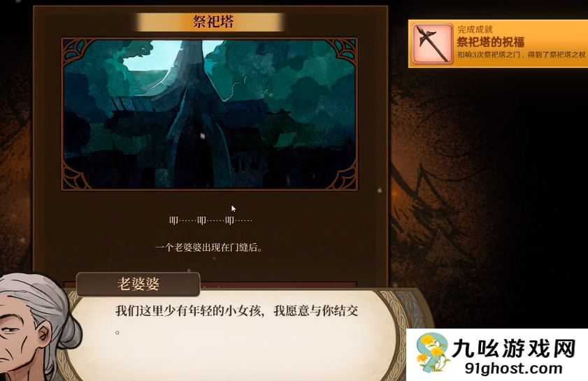 祭司塔的祝福是游戏里的一个成就,想要得到这个成就,就必须要找到祭祀塔之门,想要达成这个条件,玩家就需要去烈焰河进行探索,在这里会随机触发祭司塔,调整过程中,玩家可以多去选择带有问号的道路,在行走的过程中,如果遇到了祭司塔,那就可以直接敲门三次,达成敲门次数之后可以获得火山门之杖,这是也可以解锁祭祀他的祝福成就,获取方式是比较简单的,但祭司塔的游戏里出现的位置并不,需要多去带角色去搜索。