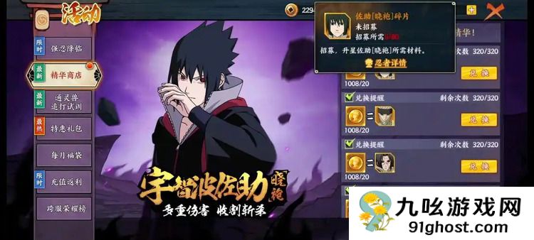 火影忍者手游如何买鹰佐?游戏中的角色鹰佐是根据动漫角色佐助在鹰小队时期的造型设计而成,拥有与动漫中相同的技能。获得鹰佐的最简单方式是通过当前版本的氪金抽卡,在高级招募页面中有机会得到碎片或完整角色。如果开启了游戏内特效,抽取价格还会有所优惠,另外,每日商店也会刷新碎片,需用金币购买。如果不想氪金,还有其他免费获取的途径。游戏会定期举办各种活动,玩家可以有机会选择忍者碎片;每日签到也是一种获取方式,但概率较低;也可以选择暂时不抽卡,积攒金币,等到下次忍者复刻时一次性获取。