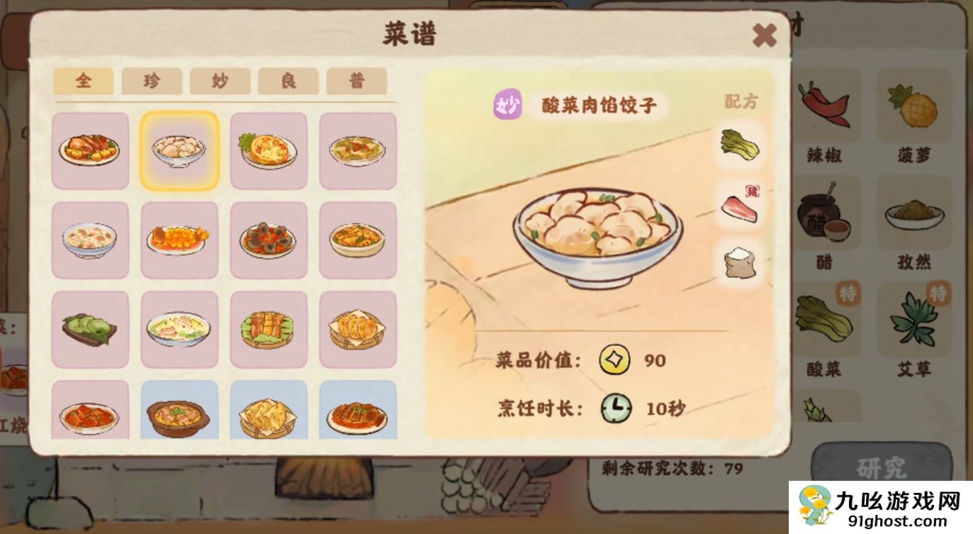 若各位想去学习更多的菜谱,也可去参与食来运转活动。只要前往吉祥楼开店,就能在这里研究各种新的菜谱。它里边的研究玩法与厨艺等级中的研究方式一样,都需要人们搭配不同的食材来探寻出每道菜谱的食材组合,且研究时也不需要消耗任何的材料。但要注意食来运转活动每天的研究次数有着100次的上限,若各位用完了100次只能等到第二天再进行研究。此外,这里能解锁的菜谱有妙品、良品和普品三个等级,其中妙品美食的开店收益最高,所以各位最好优先去解锁该品质的菜谱,好完成此活动的经营目标。