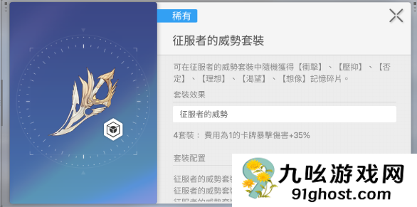 玩家如果想要玩装备系统,那首先就应该了解核心的规则,每个角色都有6个装备槽,在搭配的过程中就要遵循两件套装加上4件套装的逻辑。目前游戏就会有12种套装的效果,而且两件套效果没有办法叠加,在选的时候那就需要更加的精准一点。这里就可以先说一下核心战斗力的四件套,如果经常性用一费卡牌打输出,那自然就应该选择征服者的威势套装。4件套可以让一费卡牌的暴击率直接提升到35%。像雷欧娜就会依赖于一费卡,穿上之后就可以直接提升输出力。