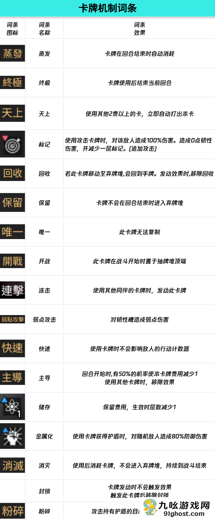 除了这些基础的正面和负面词条,卡牌机制词条也提供了独特的战斗方式。蒸发是一个有趣的机制,它会让卡牌在回合结束时自动消耗。虽然这听起来像是个不太理想的设计,但实际上,它能帮助你快速腾出卡位,释放更多的卡牌,给你更多的战术选择,尤其是在需要迅速适应战斗节奏时,这种自动消耗的机制反而成了你的一个强有力的工具。