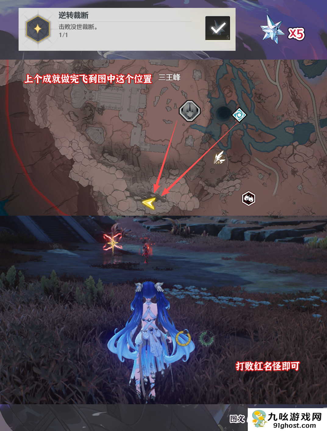 成就地点地图上会用红色箭头标记出从最近传送点出发的路线。