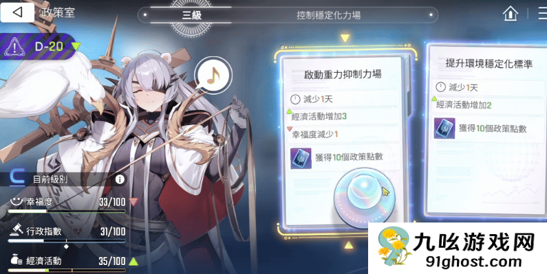 政策式的批准玩法是提升家园实力的关键,每次在批准之后就可以增加家园的四维属性,包括行政指数,经济活动,治安指数还有幸福度。不要小看这四维属性,直接就会关系到后续的作战目标,毕竟家园越强,那后续的养成之路才会比较顺畅。