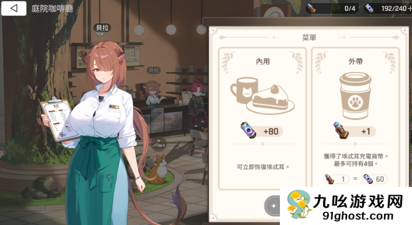 还有就是庭院咖啡厅这里就等同于是补给站可以获取额外的体力,而且获取的方法很简单,没有复杂的任务也不需要去打怪。在这里撸撸猫不仅可以放松心情,还可以触发一些小彩蛋。