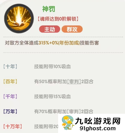 作为一名坦克,千道流的主动技能神罚,除了对敌方全体造成技能伤害外,还有额外附加吸血,有机率对目标附加审判这些效果。技能附带吸血,就意味着战斗过程中可以自身恢复血量,减少了对辅助治疗的依赖,也增加了前排扛伤的能力。附加的审判只要携带者出手,就能够使其受到特殊伤害,这个效果弥补了千道流这样防御系输出不足的缺点,相当于锦上添花。