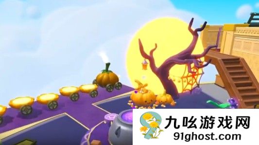 不过不用害怕,地图里的 “吓人元素” 都带着可爱感:马车上挂满了彩色彩带和写着 “万圣节快乐” 的节日横幅,车厢里还放着迷你南瓜灯,哪怕被突然出现的南瓜吓一跳,看到这些装饰也会瞬间被治愈。不少提前体验的玩家都说,这个地图 “又诡又萌,玩起来超上瘾”!
