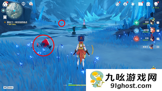 得知有几处被蓝色植物包围的古代坚冰,其中似乎隐藏着其他碎片,继续探寻雪山。