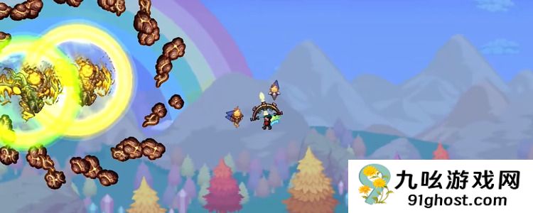 击败神石守卫后,最后的统治守卫也会冲刺攻击玩家,留下分裂的神圣之火,它将在玩家左右对玩家使用两种攻击,一种是发射一串神圣的矛,它们会像波浪一样飞行,其中会穿插散射的矛,速度更快,并且会定期减速,另一个是一个非常大的弹幕,爆炸后,神圣的火被分裂了,在专家模式下,它们的攻击速度更快,弹幕速度也更快,圣晶的碎晶数量更多,下落速度更快,治愈新星的数量更少,神石的岩石覆盖面更大,统治和神石守卫将更频繁地切换位置。