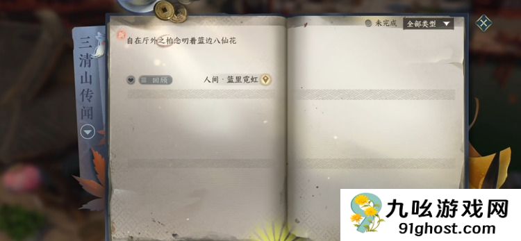 送到三清山后,他和之柏交谈。他说他想编一个五颜六色的花篮,但他还缺一朵蓝色的花,希望能从天竺爷爷那里得到。天竺爷爷指的是三清山上的天竺僧侣。当他和他交谈时,他得知无忧无虑的花还没有开放,所以他接到了帮助他培养无忧无虑的花的任务。当他得知无忧无虑的花很难开花时,他已经在山上培养了很多年,所以他建议帮他打水和照顾花。打水的地方在他附近的池塘里。打水后,他会让你帮他注意花的种类。谈话结束后,他会给你一朵蓝边八仙花。