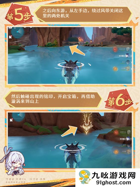 5、向东移动,左侧绕过风带的关闭机关,接着触碰铭印开启宝箱,利用漩涡前往山顶。
