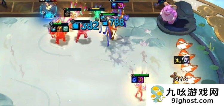 升到八级开始大D搜牌,最好保证火男和妮蔻两张四费卡中的任何一张二星,如果压力小,可以升到九级,找出妮蔻和火男的双二星,还有最后一个街头棋子萨弥拉,如果压力很大,需要在八级找到全员二星后再去人口。