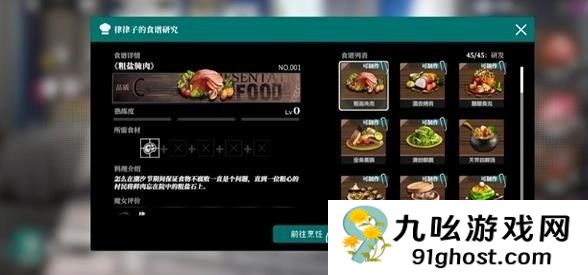 大骨汤,回锅飞鲫,潮汐鱼羹,水果沙拉,红白丸子汤,番茄肉酱鱼粉,三明治,黑石煎牛排,黄金锅巴,全鱼蒸锅,清炒鲜蔬,什锦水果,火焰芝士肉球,索式椒麻鸡,百兽饺,融雪火山,湖月三蒸,鱼香肉丝