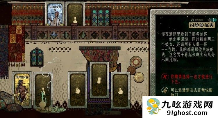 第六项名为“纠纷的任务”,在权力上≥9、侠名≥9.它可以被触发,我们必须用银杀戮来对付不满意的贵族,才能折叠卡片,事件结束后,你可以得到一个侠义的名字,一个恶名字,并扣除一个权力,第七件事是“下次你敢吗”,首先完成小圆的“梦中狼”,在随后的狼眼中,选择“私人调查”,触发“下次你敢吗”后,你可以折叠银杀人,得到一个侠义的名字,一个妻子的幸福,第八个名字是“宫廷处罚”,需要收集尚未失败的罪行,之后,在权力的游戏中,将罪行提供给苏丹,提供后,你可以折叠铜或石头杀人。