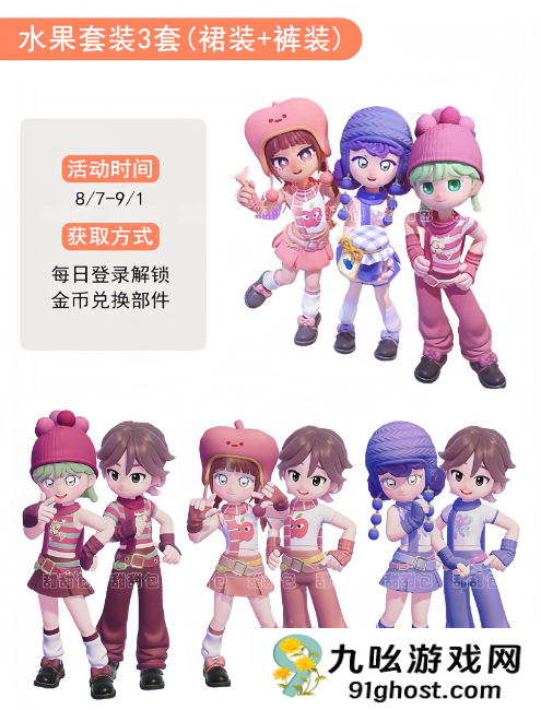 5、水果套装3套:8.7~9.1每日登陆解锁,金币兑换部件