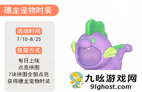 2、穗龙宠物时装:7.10~8.25每日上线点亮拼图获得