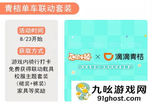 7、青桔单车联动套装:8.23游戏内骑行打卡免费获得联动载具,校服主题套装等