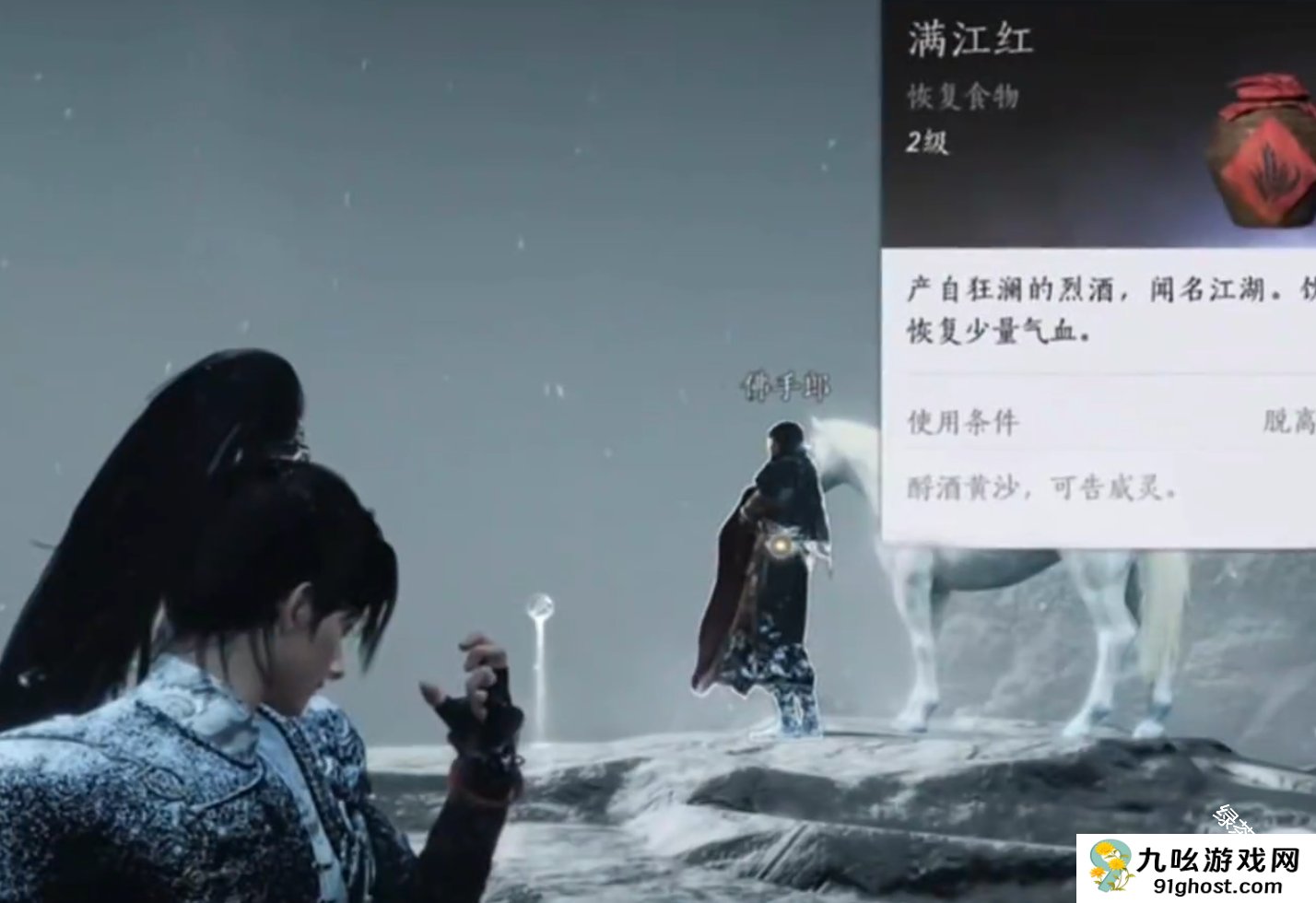 10、把酒喝完后来到神仙渡找到项定花,与他拼酒,获胜后完成对话就可以加入狂澜了;