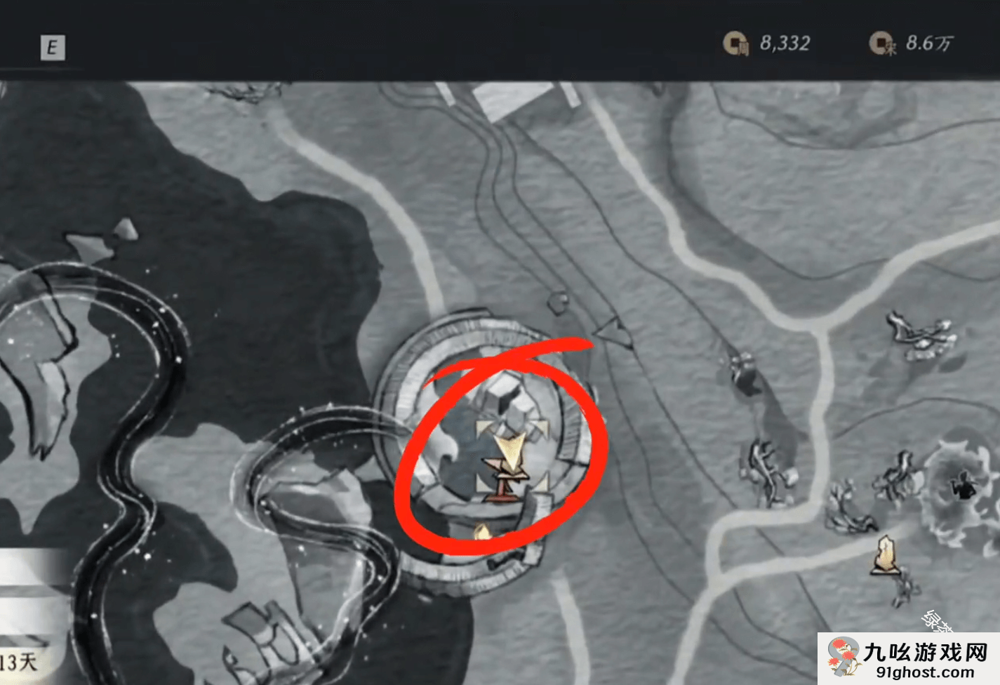 1、首先来到百草野的北盟遗址然后喝下地台中间的酒;