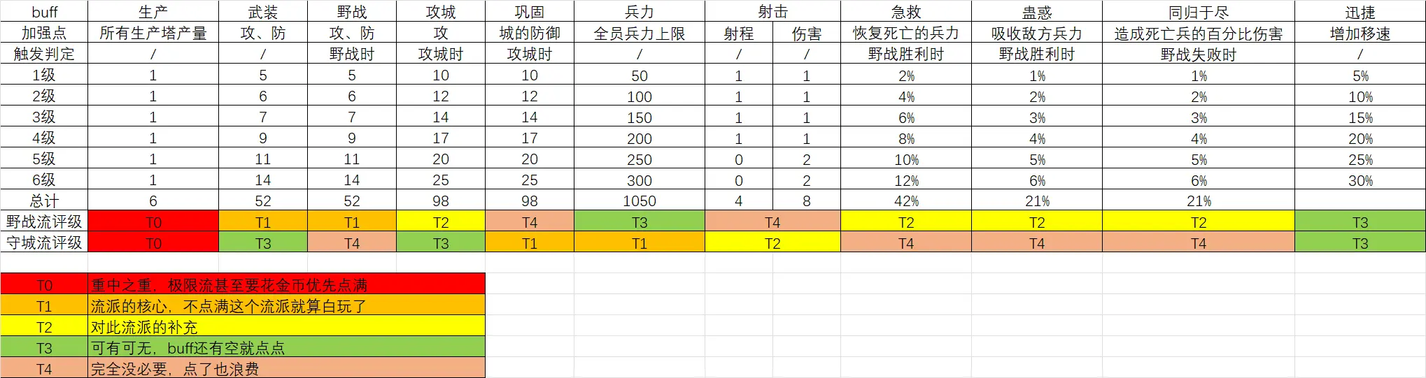 3、补充:兵力上限>≈射击、武装、攻城、速度