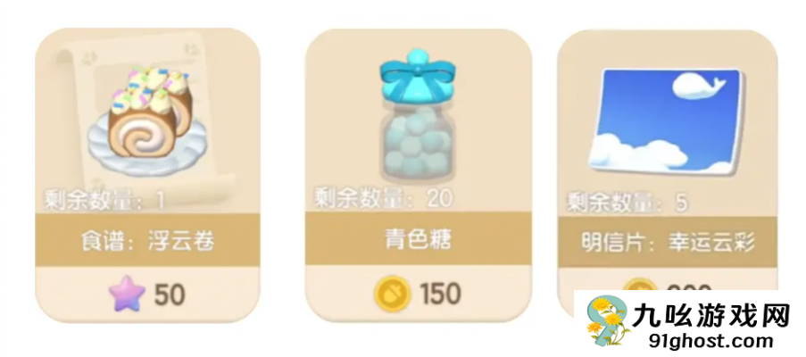 雨天朵朵商店出售 食谱:浮云卷、青色糖、明信片:幸运云彩