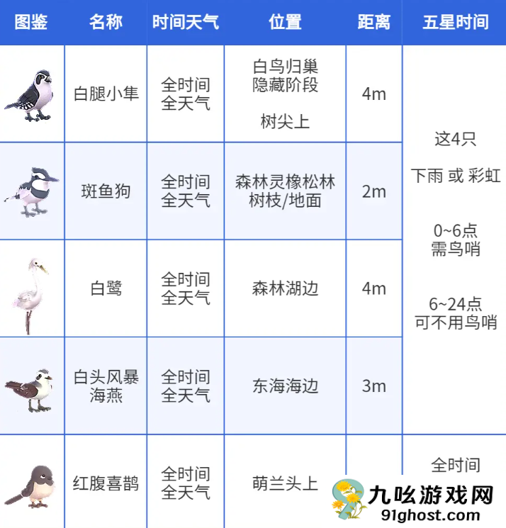 五星时间:下雨/彩虹 0~6点需鸟哨6~24点可不用鸟哨
