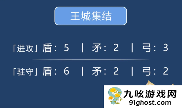 - 驻守盾6、矛2、弓2;