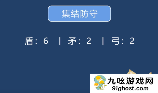 2、集结防守:盾6、矛2、弓2;