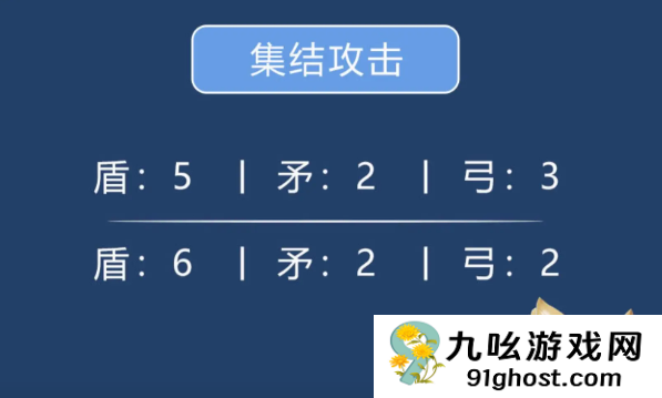 - 进攻盾5、矛2、弓3,