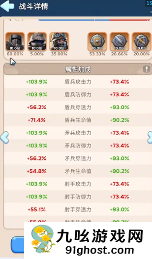 无尽冬日地心探险玩法中,在进行各个不同的关卡进行挑战时会看到当前部队的敌人属性详情,然后可以对自己的士兵盾兵、矛兵、射手来进行比例的分配,其中集结攻击比例分配可以为盾5、矛2、弓3;集结防守比例为盾6、矛2、弓2;打熊比例为盾1、矛2、弓7;王城集结进攻盾5、矛2、弓3,驻守盾6、矛2、弓2;兵工厂比例为盾5、矛2、弓3;堡垒争夺比例盾5、矛2、弓3。