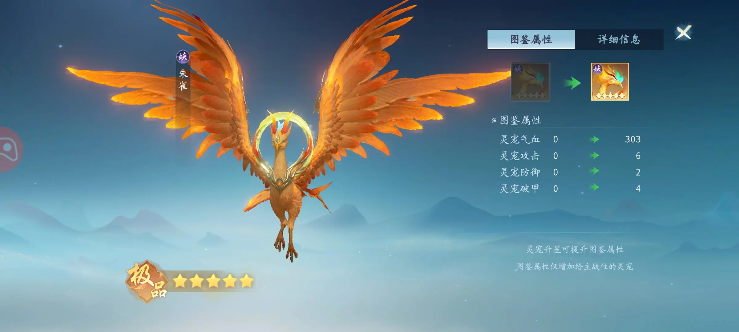 3、朱雀,如果有抽到就直接玩,朱雀是这里面最强群伤的灵宠,并且对生命值超过百分之六十比例的怪物造成额外的伤害。