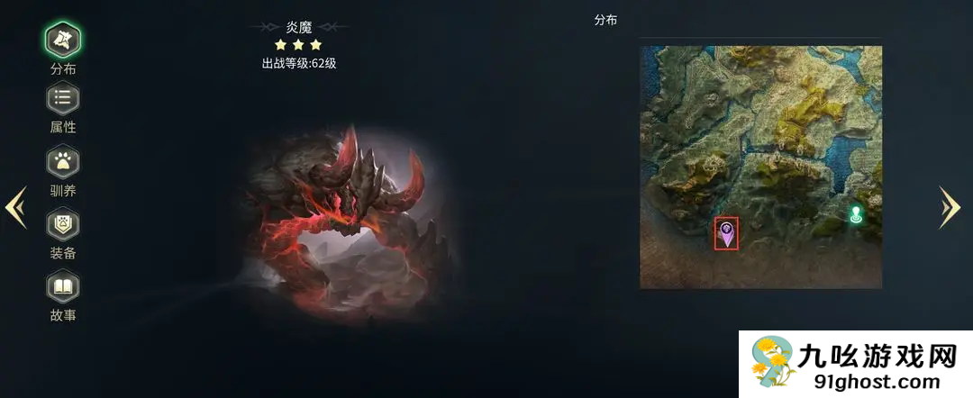 战斗输出:炎魔拥有较高的伤害,暗系伤害可克制绝大部分生物,攻击还带有减速效果,并且它具有较高的穿刺抗性,62级即可出战,可作为前期主力肉盾帮助玩家扛伤。