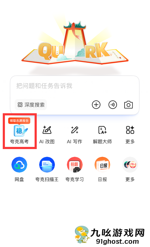 1、在夸克中选择【夸克高考】;