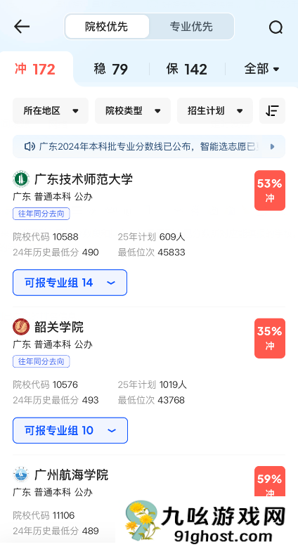 5、可以看到自己分数所对应的学校信息;