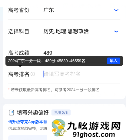 3、在其中输入自己的地区详情以及科目和分数,然后还会预测出自己的排名信息;