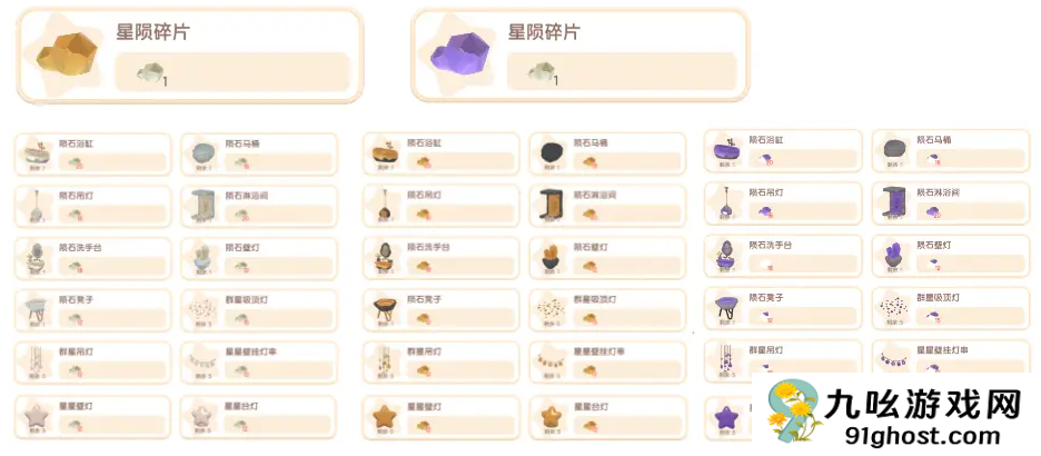 流星雨落下后会有星陨碎片,找到星陨碎片后与朵朵对话可以换家具