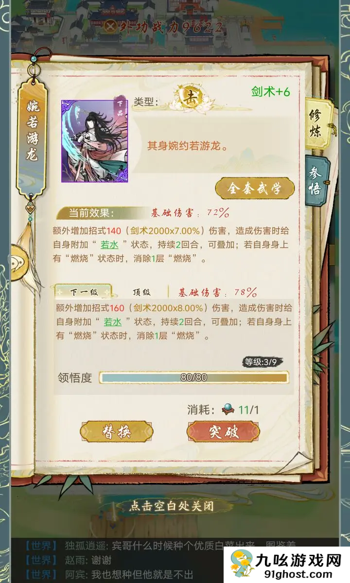 1、已拥有但是未使用的外功进行升级也是会增加剑术;