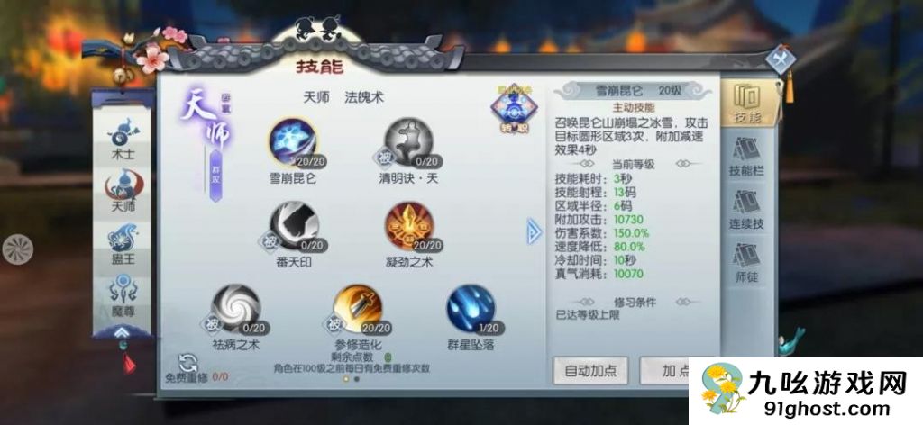主不破辅入阵是常见搭配,前者强化暴击和输出,后者增强控制效果和技能循环。具体加点时,第一卷重点投资芬馨映月提升基础属性,第二卷轻歌幽声增强暴击收益,第三卷昆章济岚进一步放大技能伤害。天书第五卷全满收益最高,但前期资源有限时可以优先点出关键节点。