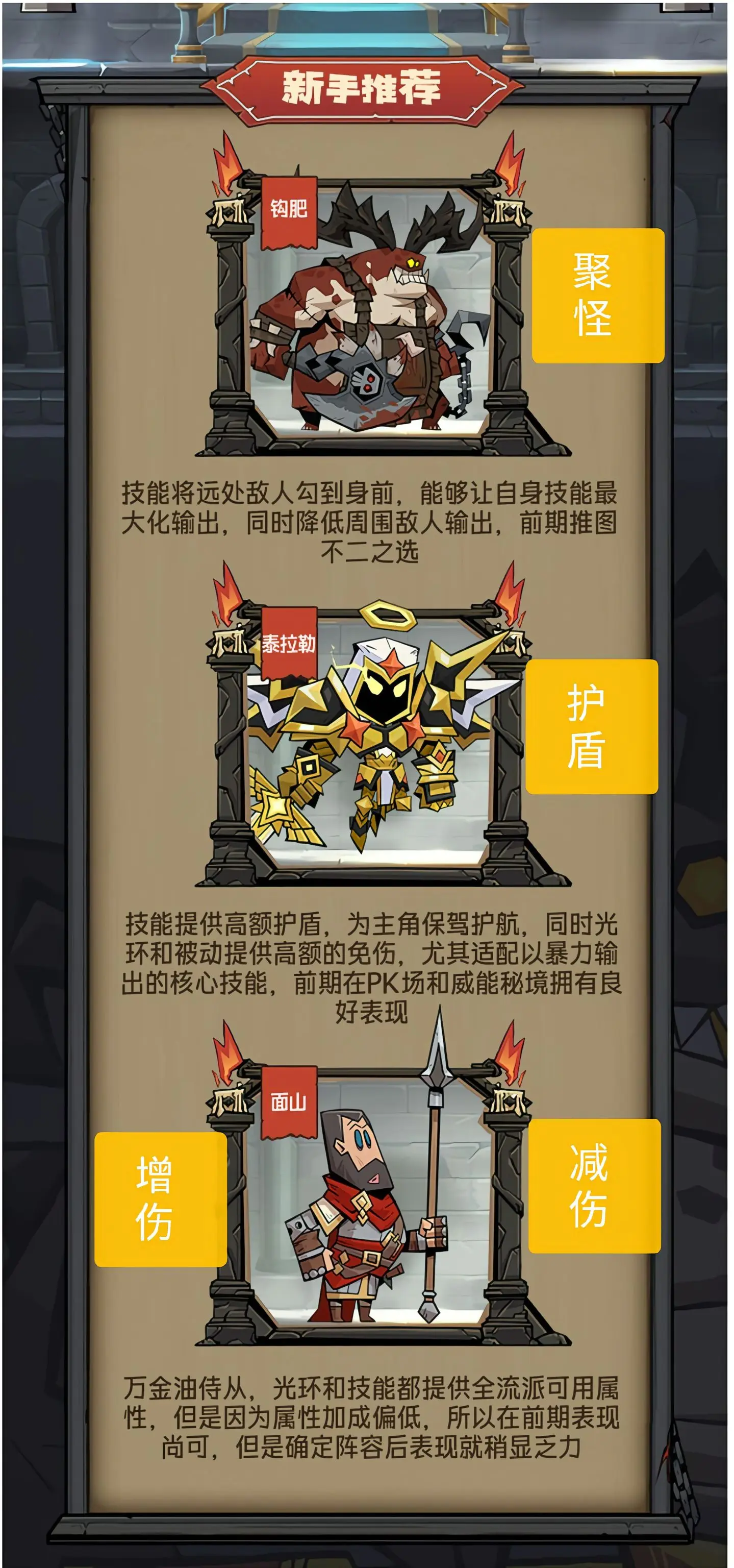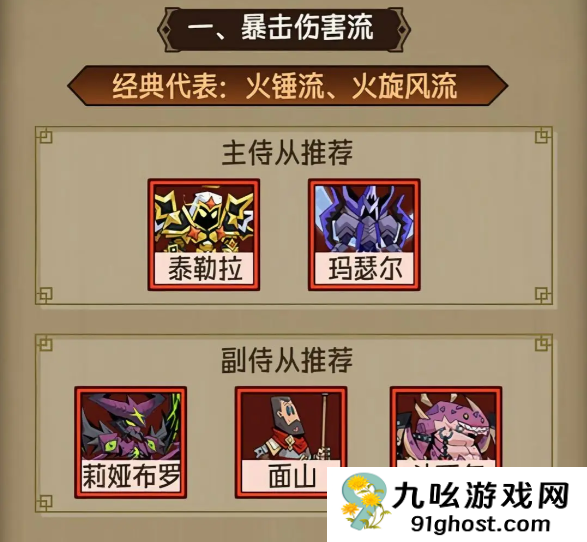 英雄没有闪中的侍从新手可以钩肥、泰拉勒、面山。侍从的流派可以选择暴击伤害流,主侍从为泰拉勒和玛瑟尔;副侍从选择莉娅布罗、面山和斗瓦尔;还有附伤急速流、持续伤害流、防御反击流可以选择,具体的侍从选择内容见下文详情攻略!