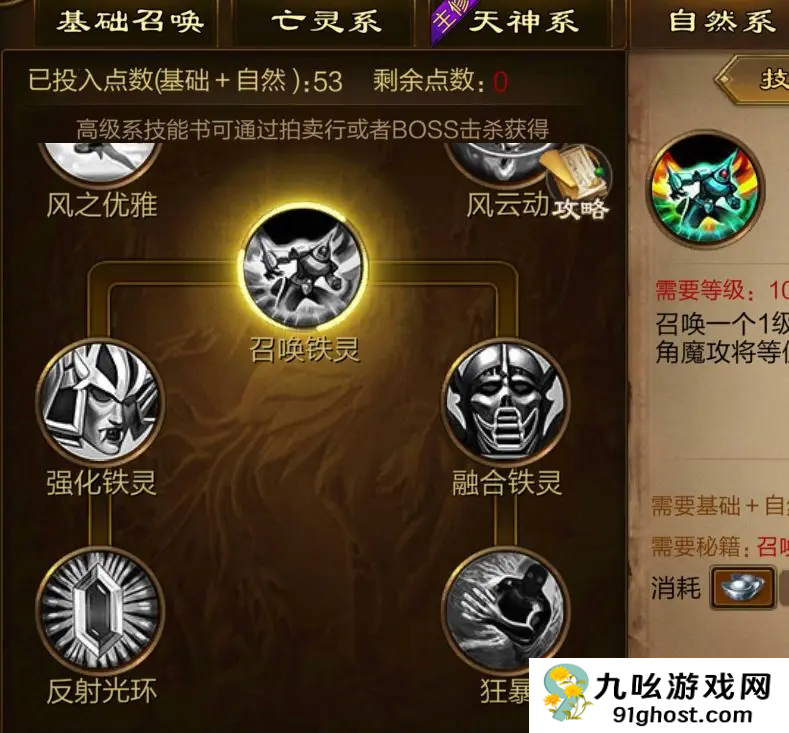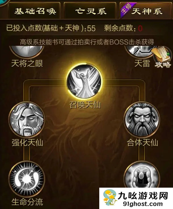 3、第三个就是我们推荐的天神系的技能了,这个系列的技能是比较强的,而且很多召唤的,这个系列就只会召唤天兵神兵、天将和天神的系列技能,就不能召唤亡灵系的了,也可以选择多修但是就会很麻烦的而且也升不到最顶的召唤,升到最顶召唤的对应系列才强。