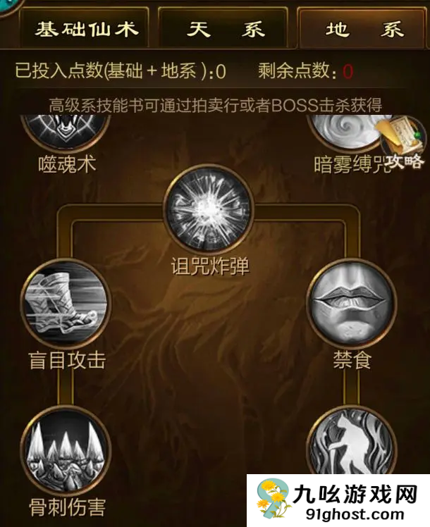3、第三个就是推荐的地系的技能了,这个系列的技能是比较强的,都是打伤害和控制的一些减怒,都是一些可以造成伤害的技能,主要的技能就是僵直、狂乱诅咒和诅咒爆炸这些技能,都是打伤害和控制的技能,其他的就是增加这些技能的属性强度的技能。