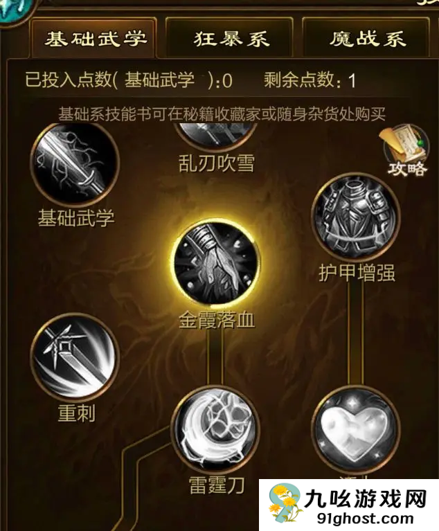 1、第一个是基础武学,这些技能是一些刀法斩击之类的几个技能,其他的就是这个属性的加强。
