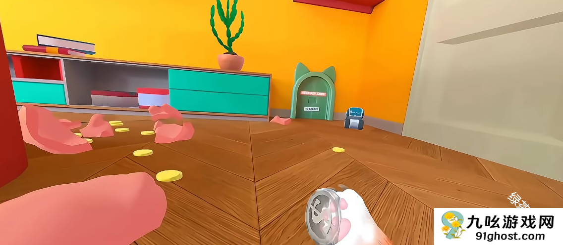 奶奶的贴心小猫游戏也叫做我是猫,想要在游戏中出门跑到外面的世界需要获得门禁卡,首先需要找到存钱罐将其打碎获得一枚银币,使用银币可以打开二楼的保险箱可以获得门禁卡,可以打开通往车库的大门,在隔壁的体育馆打败拳击超人可以获得一个U盘,U盘可以进入地下通道来到一间密室,地上有出门的门禁卡。